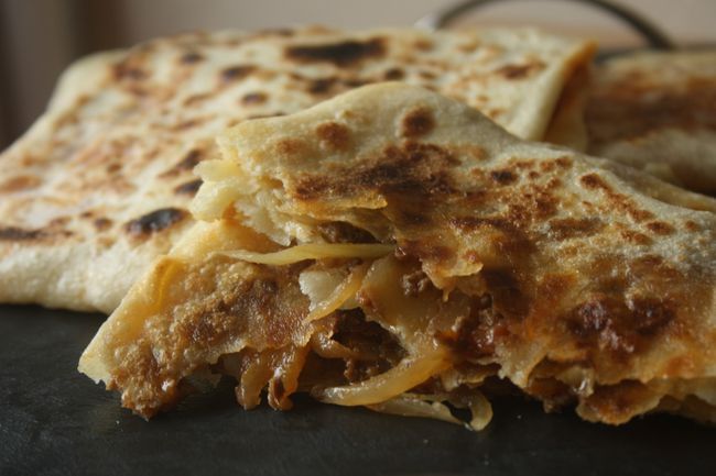 Voici donc les Mahjouba ou plus couramment appelées Mhajeb, ces crêpes arabes, préparées à partir de la pâte à msemens et farcis, ici à la viande hachée et sauce bolognaise. Ils sont absolument délicieux.